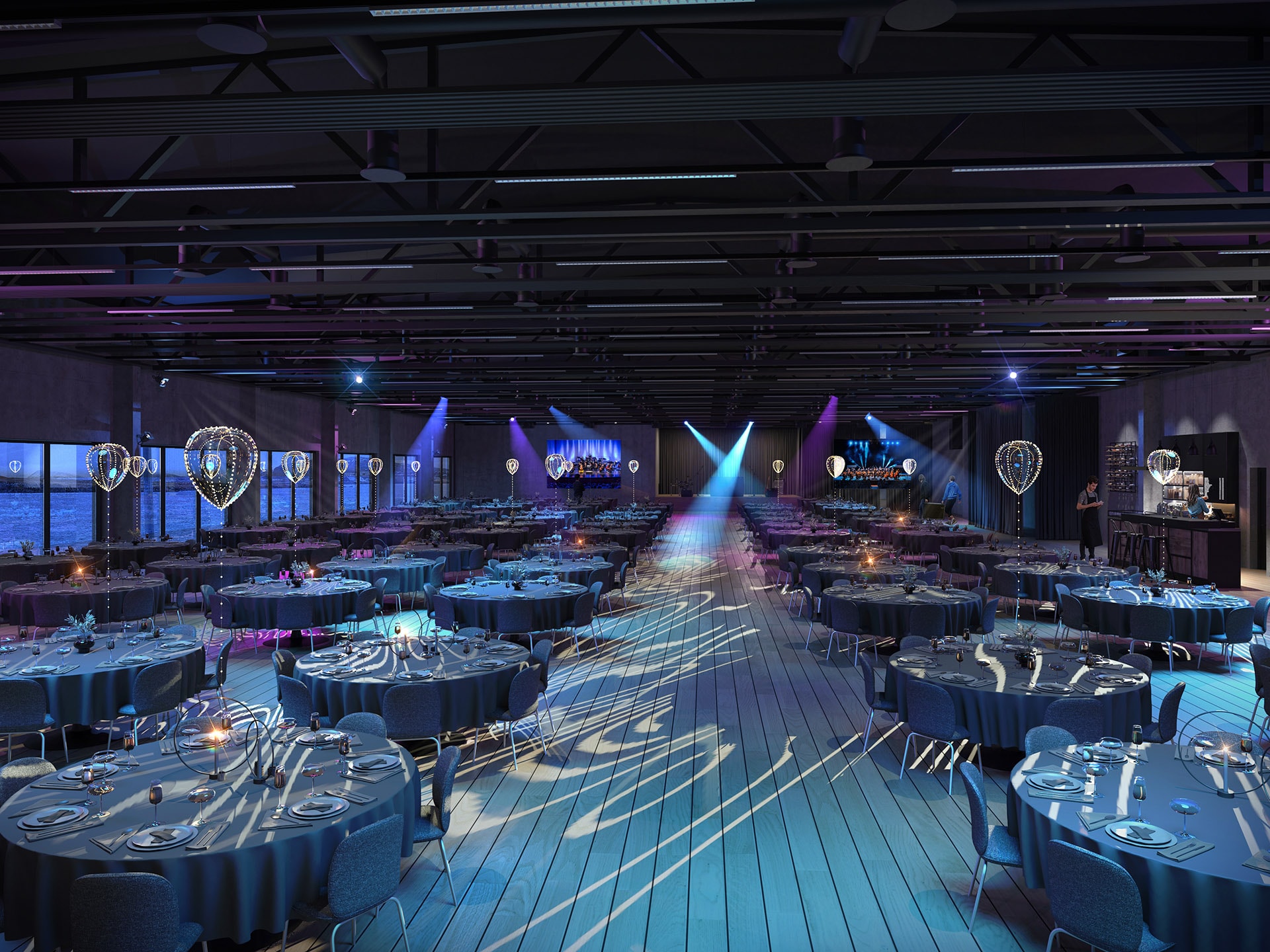 Vör rúmar allt að 2.000 gesti, um 900 manns í sæti og munu veislugestir njóta stórbrotins útsýnis yfir sundið.