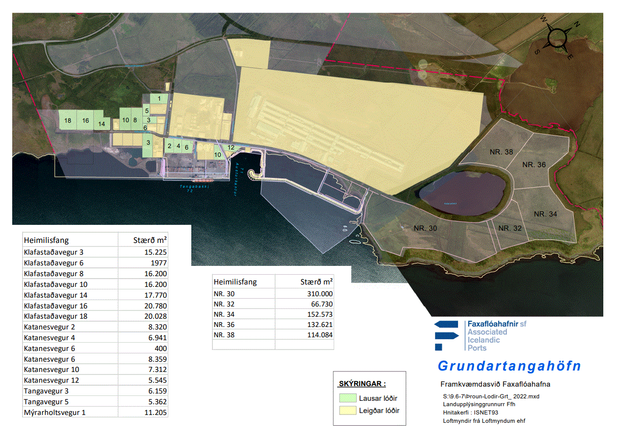 Faxaflóahafnir sf. óska eftir umsóknum um leigu á athafna- og iðnaðarlóðum á Grundartanga í Hvalfjarðarsveit. Á Grundartanga eru aðstæður góðar til uppbyggingar á fjölbreyttri athafna- og iðnaðarstarfsemi; úrval lóða, iðnaðarhöfn, góðar samgöngur innan svæðis og góðar tengingar við Þjóðveg 1. Atvinnustarfsemi á svæðinu þarf að falla vel að markmiðum græns hringrásargarðs eins og lýst er á heimasíðu Grundartanga: www.grundartangi.is
